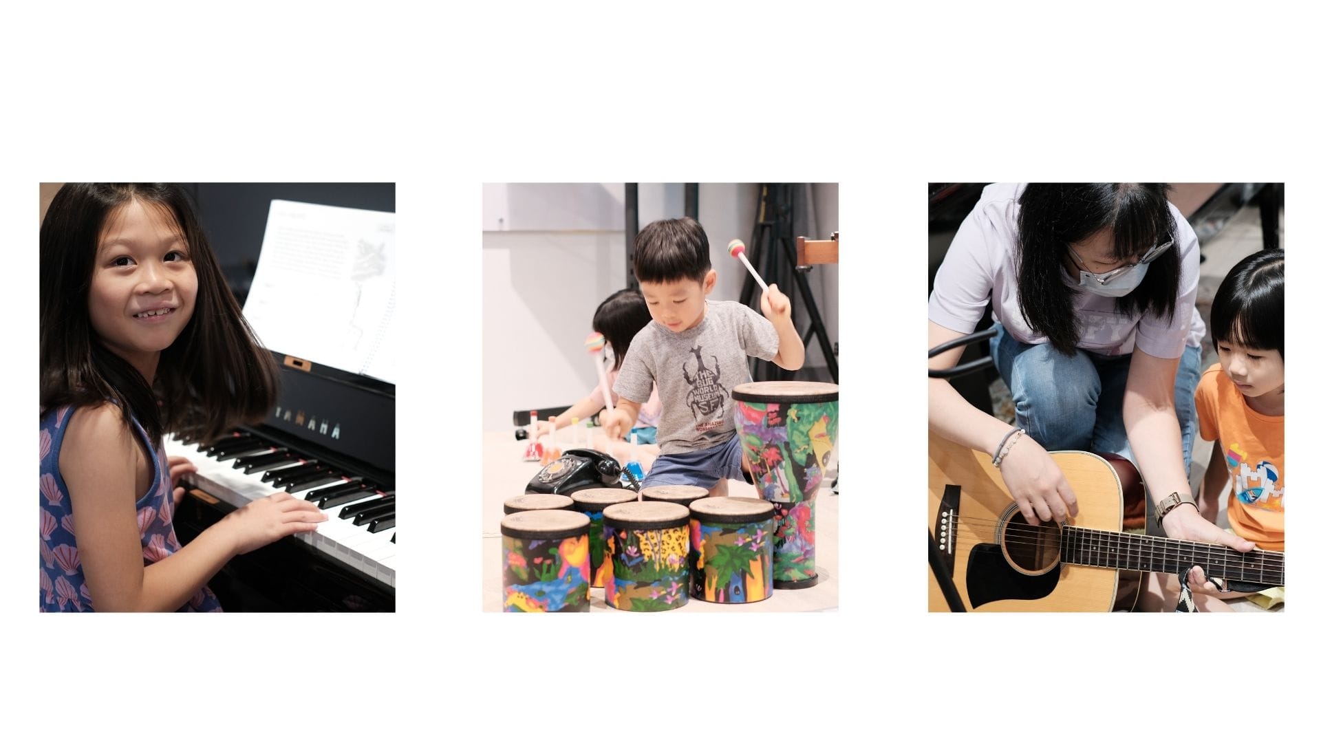 夏令營採取吃到飽的方式,讓大家完整上到小小鼓手所有的經典課程,也差不多包辦了所有樂器。課程包含:爵士鼓、鋼琴、馬林巴木琴、鐵琴、烏克麗麗。如果你還不知道孩子喜歡什麼樂器,來小小鼓手的夏令營絕對是是一個最高CP值的作法。