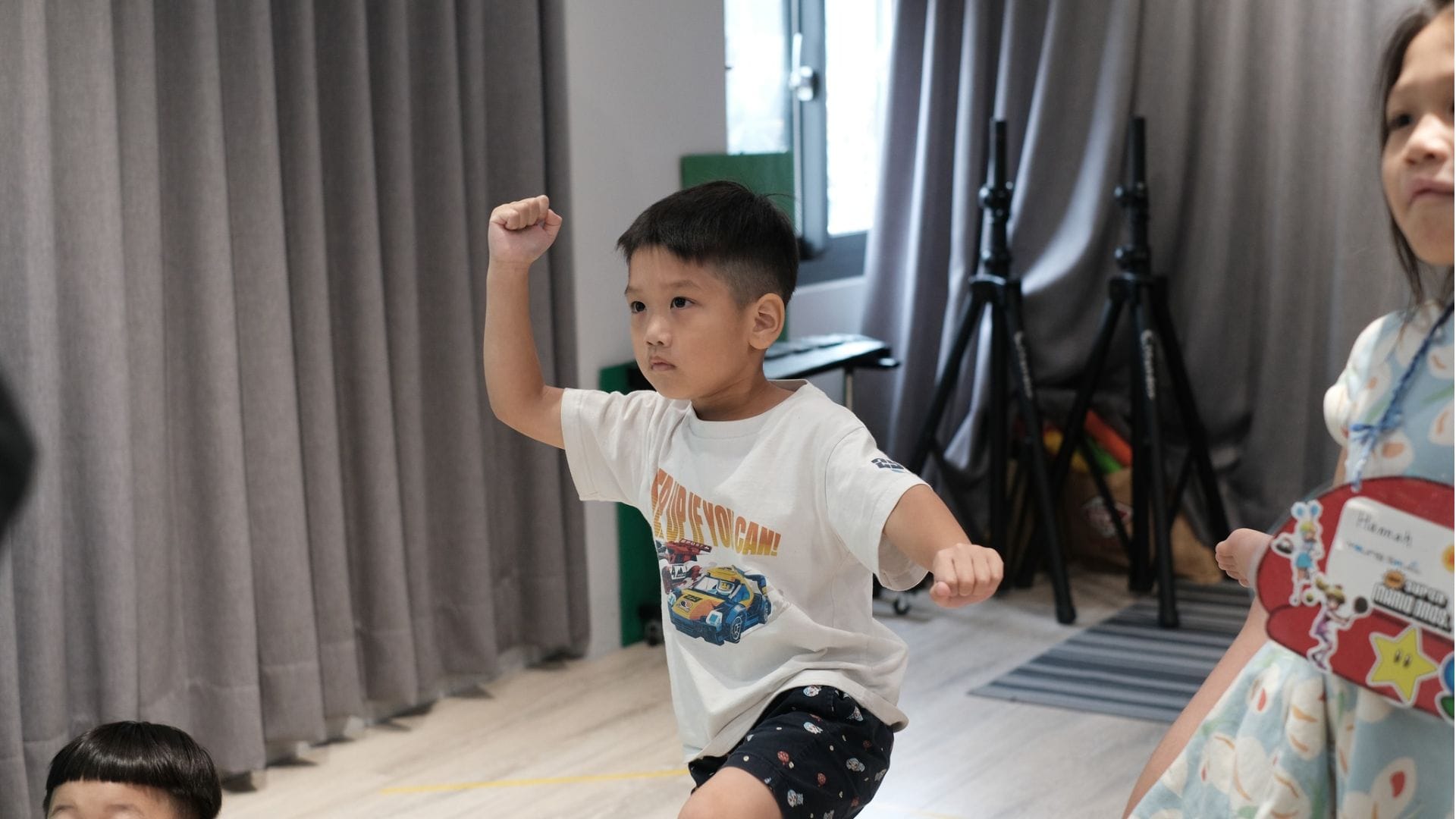 課程以「聲音律動」為破冰,結合節奏、音樂、遊戲與律動,快速提升孩子參與感與身體感知。午後課程則聚焦「配音」主題,從音色、節奏、旋律與和聲四大聲音元素出發,建立基礎聽覺與表達能力。